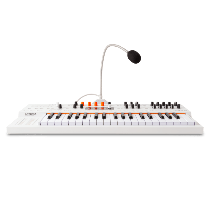 De MiniFreak van Arturia kreeg al snel een plek in de studio's en op de podia van creatieve muzikanten. Nu tilt Arturia dit synthbeest naar een nog hoger niveau met de MiniFreak Vocoder Edition. Deze vernieuwde uitvoering heeft niet alleen een frisse look met een wit-oranje behuizing, maar ook een krachtige vocoderfunctie waarmee je je sound direct een compleet nieuwe dimensie geeft. En het beste? De microfoon met zwanenhals en statief wordt gewoon meegeleverd, dus je kunt meteen aan de slag.
