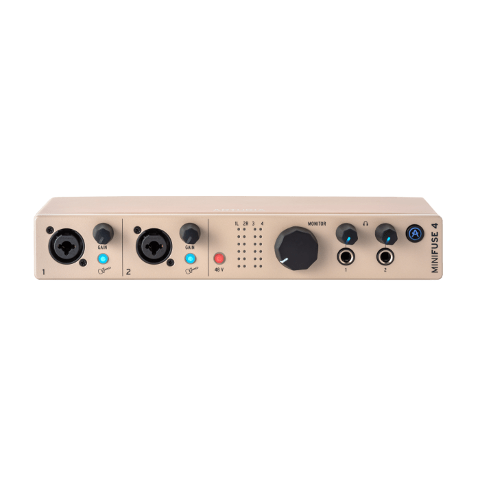 Je vindt er ook een handige USB-A hub voor minder rommel in de studio, die elk USB-A apparaat ondersteunt, inclusief MIDI. Elke poort kan tot zo'n 250 milli-ampère aan. Content creators zullen enthousiast zijn over het virtuele stereo loopback-kanaal van de MiniFuse 4, waarmee je de audio van je computer kunt monitoren en opnemen terwijl je ook de ingangen van de interface gebruikt. En om je meteen op weg te helpen, wordt de MiniFuse 4 geleverd met een softwarepakket met enkele van Arturia's populairste plug-ins!