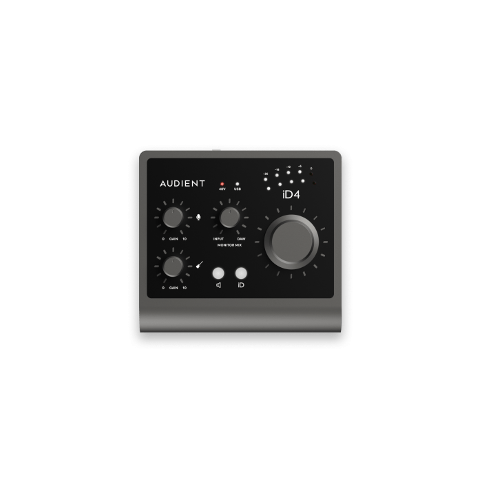 De iD4 is de meest compacte audio-interface uit het Audient-assortiment. Met één XLR/line-ingang en één Hi-Z-instrumentingang kun je tegelijkertijd een microfoon en een instrument in hoge kwaliteit opnemen. Dankzij het compacte formaat is de iD4 bus-powered; je hoeft hem alleen op je computer aan te sluiten om direct aan de slag te gaan. De twee hoofdtelefoonuitgangen maken het mogelijk om samen naar dezelfde mix te luisteren en gelijktijdig aan een nummer te werken.