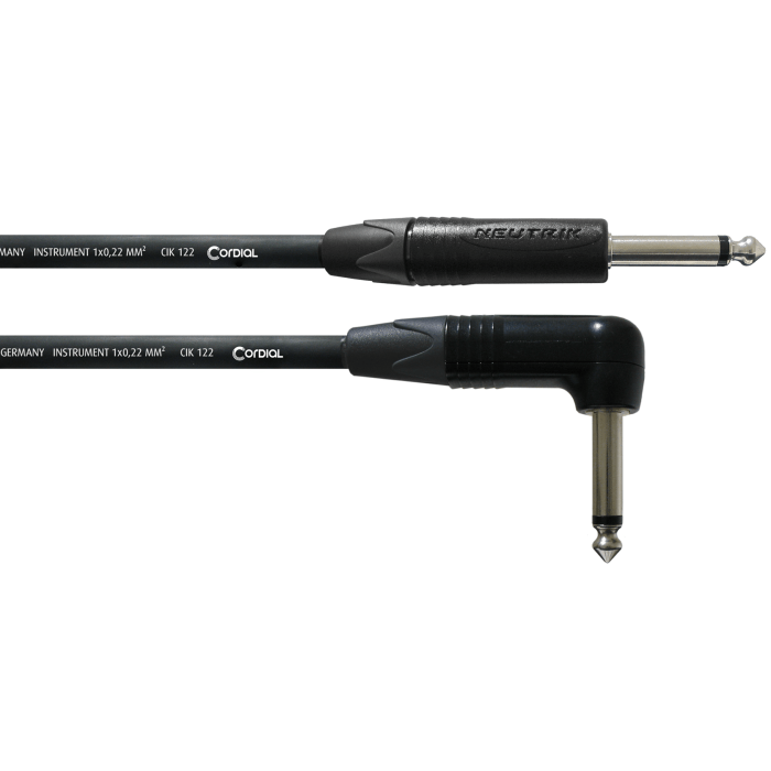 Deze PR variant heeft één rechte jack en één haakse jack. Ideaal om de haakse plug aan kant van je gitaar in te pluggen; de kabel kun je dan makkelijk achter je gitaarband steken waardoor deze extra goed blijft zitten. En hij zit dan niet in de weg! Zoek je toch liever een kabel met twee rechte jacks? neem dan zijn broertje: de CPI PP variant.