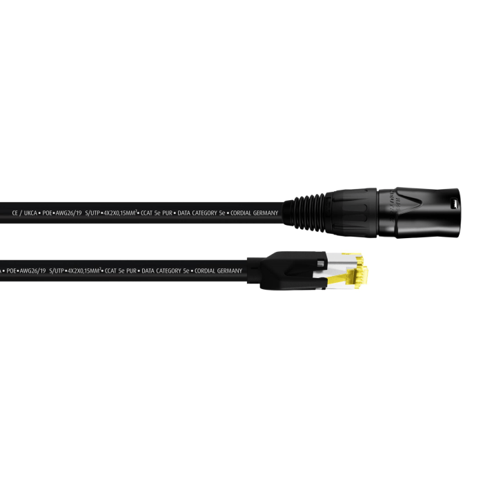 Cordial CSE 3 NH 5e PUR datapatchkabel is opgebouwd met CCAT 5e PUR bulk kabel en Hirose RJ45 connectoren, waarbij één zijde is voorzien van Neutrik etherCON connectorbescherming. Deze kabel beschikt over een flexibele AWG 26/19 binnengeleider en een speciale TPE-V stabilisator, waardoor hij zeer geschikt is voor audio netwerken (Dante), lichtsturing en EtherSound systemen.
