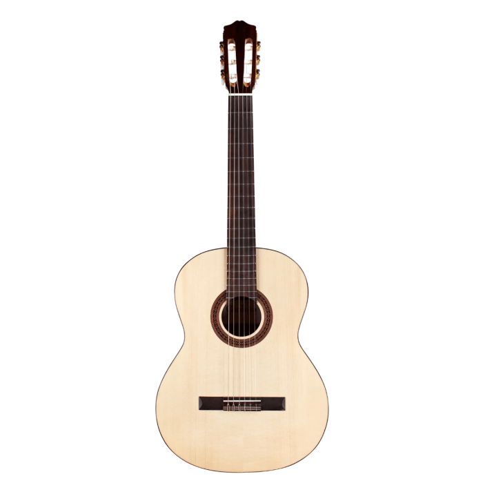 Met nylon Savarez strings, een solide top van Engelmann sparren en een back van mahoniehout krijg je heldere, krachtige tonen met een beeldschone sustain. De gesneden kop, met de hand ingelegde houten rozet, Pau Ferro binding en glanzende PU-afwerking maken deze gitaar ook nog eens beeldschoon.