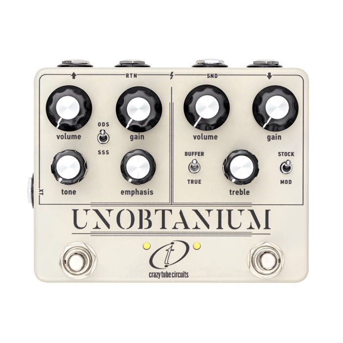Een mythische overdrive ontmoet de toon en het gevoel van twee iconische versterkers. De mensen van Crazy Tube hebben het circuit van de high headroom overdrive nauwkeurig nagebouwd met de magische mix van clean en overdriven tonen en extra functies toegevoegd voor veelzijdigheid. De amp-in-a-box sectie gebruikt een volledig analoog circuit om de essentie van twee legendarische D-style buizenversterkers te vangen. Van buisachtige gecomprimeerde vette clean tot zoete zingende overdrive met bloeiende harmonische boventonen. Combineer beide kanten voor een bijna oneindige vloeiende sustain en ga je sonische gelukzaligheid tegemoet, terwijl een passieve serie-effectenlus je de optie geeft om je geliefde pedalen aan te sluiten tussen de overdrive- en versterkersectie, om zo je ideale rig te bouwen.