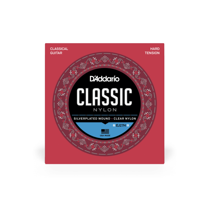 D'Addario's EJ27H Classic Nylon gitaarsnaren zijn ideaal voor beginners, studenten en professionals. Deze high tension set bevat 3 heldere nylon bovensnaren en 3 verzilverde koper omwonden bassen voor de optimale balans van warme en projecterende, langdurige sustain.