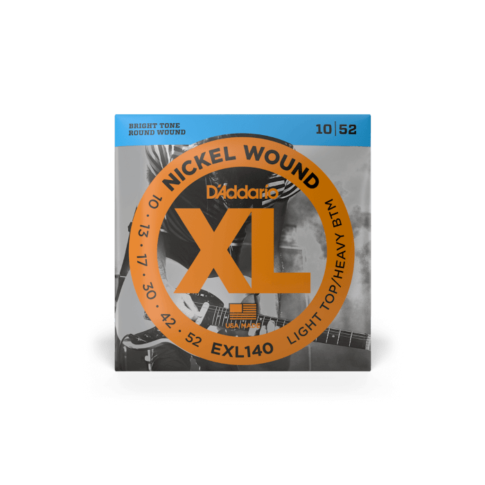 De EXL140 set van d'addario is wereldwijd een van de meest verkochte light top heavy bottom snarenset. De zwaardere E A D snaren zorgen voor een stabielere low end. Terwijl de lichte top snaren solo's niet onnodig zwaar maken. Ondanks dat ze het meest voorkomen in de pop-/rockgenre's, zijn ze bruikbaar voor eigenlijk alle denkbare genre's. Kortom; een allround zeer stabiele set!