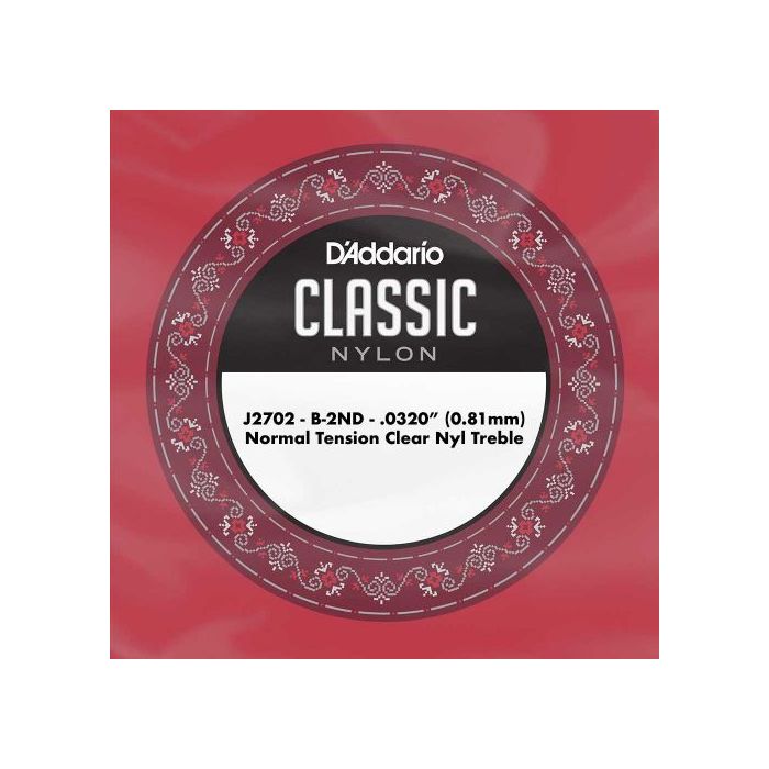 B, tweede snaar, clear nylon trebles, normal tension