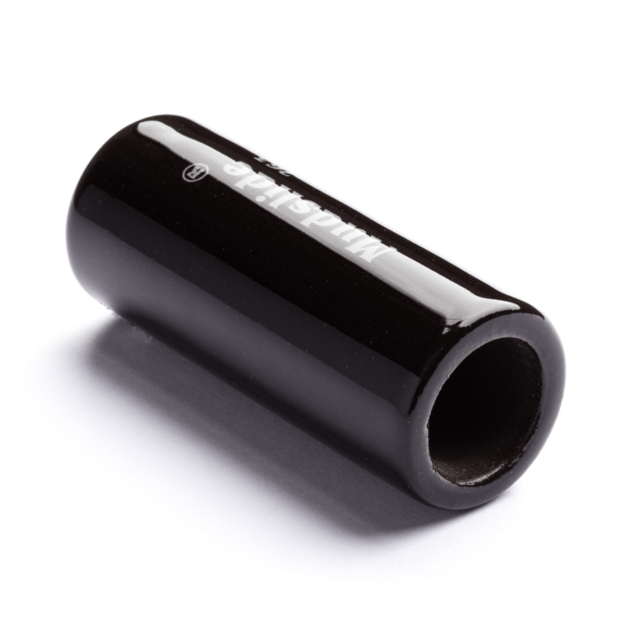De Dunlop 263 Mudslide levert een heldere toon die minder scherp is dan messing en tegelijkertijd warmer dan glas. Dankzij de dikke wand krijg je een krachtige sustain en voelt de slide robuust aan. De poreuze binnenzijde zorgt voor extra grip: de slide glijdt minder snel van je vinger, zelfs bij zweterige handen. Dat komt doordat het keramische materiaal vocht absorbeert.