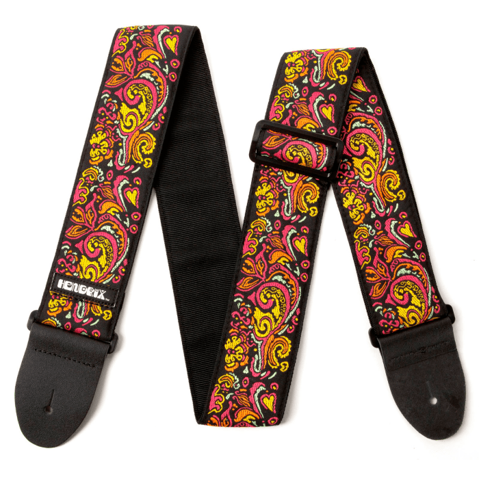 De band is gemaakt van 5 cm breed Jacquard geweven textiel voor een comfortabele en opvallende look. De uiteinden zijn afgewerkt met echt leer en de lengte is verstelbaar van 99 cm tot 167 cm – geschikt voor vrijwel iedere gitarist.