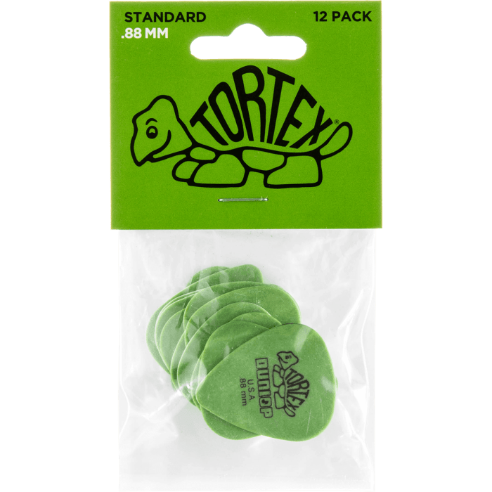 Jouw favoriete, medium-heavy groen Tortex plectrum! Een slijtvast plectrum met talkpoeder voor de grip en lage buigzaamheid vanwege de .88 mm dikte; die koop je uiteraard voordelig en handig per 12 stuks tegelijk!