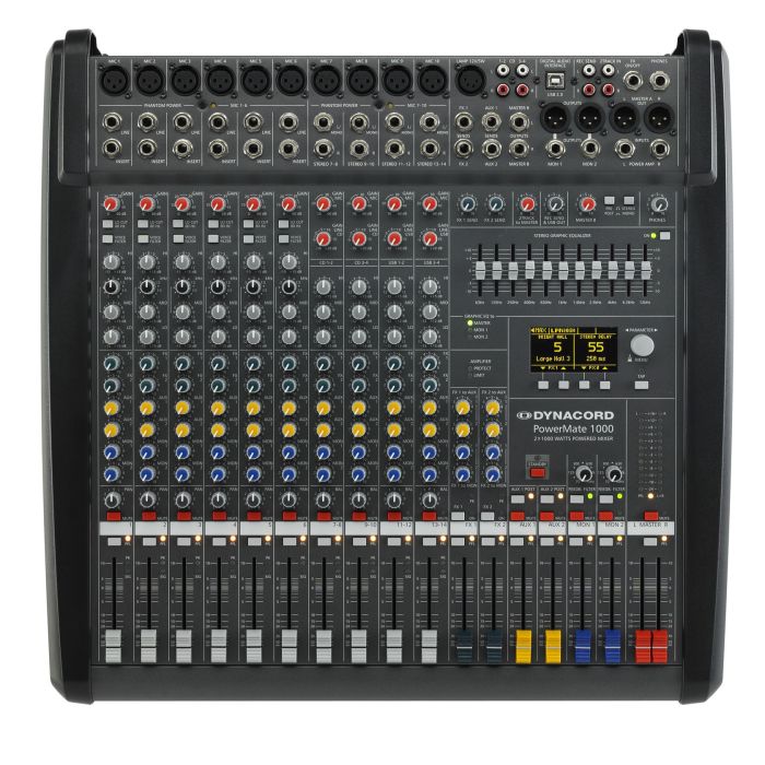 De Dynacord PowerMate 1000-3 is een mengpaneel met ingebouwde versterker. Deze PowerMate 1000-3 is alweer de derde generatie van dit mengpaneel met ingebouwde versterker. De mixer heeft eigenlijk zes type audio apparaten in één compact frame: een mengpaneel, twee effectunits, grafische equalizer, USB audio-interface en eindversterker.