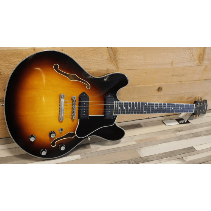 De Eastman T60/TV Satin Sunburst is in een nieuw model in de Thinline serie. En wat een pracht van een gitaar is dit....wow! Een semi-hollow thinline (met centerblock) die is afgeleid van de T59. Gelamineerde esdoorn body en top. Nu uitgerust met een paar Lollar Dog Ear P90 pickups voor die zoete en warme P90 toon. De Truetone Vintage Gloss afwerking geeft een prachtig light-aged patina, en samen met de verouderde hardware is dit een echte looker!