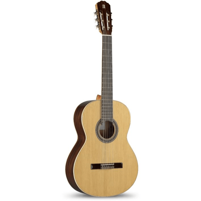 A popular lesson guitar. The 2C has a solid cedar top with sapele cabinet. This classical guitar has a binding on the top as the back, this gives the guitar a more stable sound. A pleasant guitar that offers just a bit more than the Alhambra 1C in sound and looks. As with more expensive guitars, it responds better to finger placement and touch technique.
