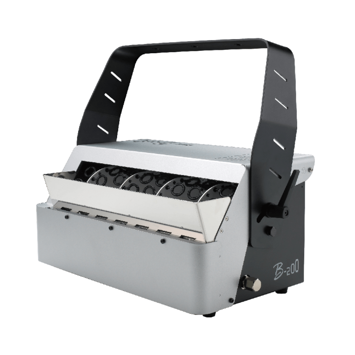 Antari's B-200 is a powerful bubble blower that produces hundreds of bubbles per minute. This machine has powerful fans that blow the bubbles high into the air and an easily fillable tank that holds one and a half liters. When the tank is fully filled with bubble-blowing liquid, the machine can produce bubbles for half an hour.