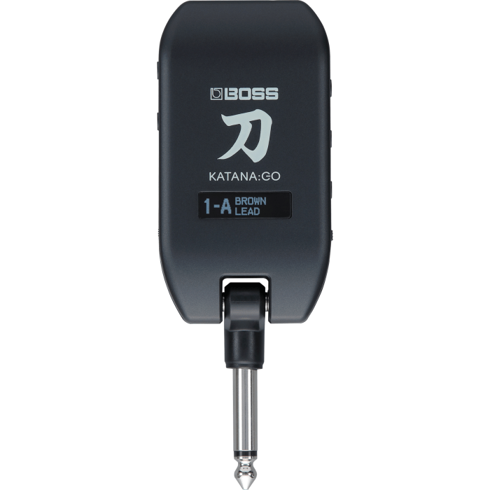 The KATANA:GO delivers premium sound for everyday playing sessions without the hassle of amps, pedals, and computer interfaces. Just plug it in, connect earbuds or headphones, call up a memory and start rocking. Built-in controls provide access to volume, memory selection and other essential functions; and you can easily view the current memory and tuner with the built-in display. The rechargeable battery provides up to five hours of continuous playback time, and the integrated 1/4-inch plug folds down to create a pocket-sized package that can be taken anywhere.