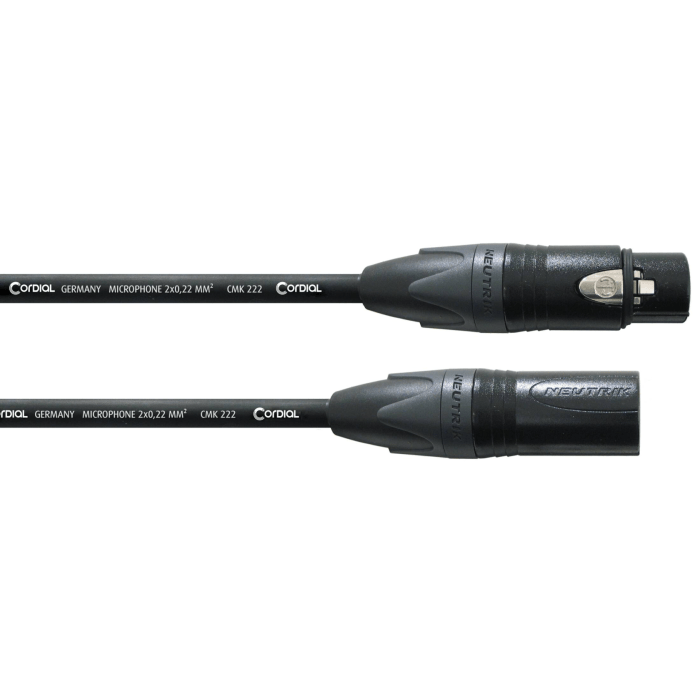 The Cordial CPM 7.5 FM is a professional balanced microphone cable for connections between microphone and stage box or mixer. Equipped with black Neutrik NC3FXX and NC3MXX XLR plugs and constructed with a 0.22 mm² cable for stable, powerful transmission. The transparent shrink tubing at both ends makes proprietary labeling easy. A reliable cable for everyday use on stage or in the studio.