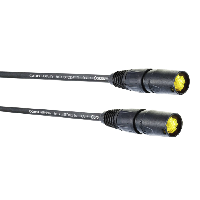 The Cordial CSE 10 NN 7 is a network data cable with etherCON connectors. Length of the cable is 10 meters. The Hirose RJ-45 connectors are carried in a protective Neutrik metal housing NE8MX-B-1 (etherCON). The CSE NN 7 is particularly suitable for the transmission of very high data rates (CAT 7). The cable is equipped with transparent shrink sleeves for easy labeling.