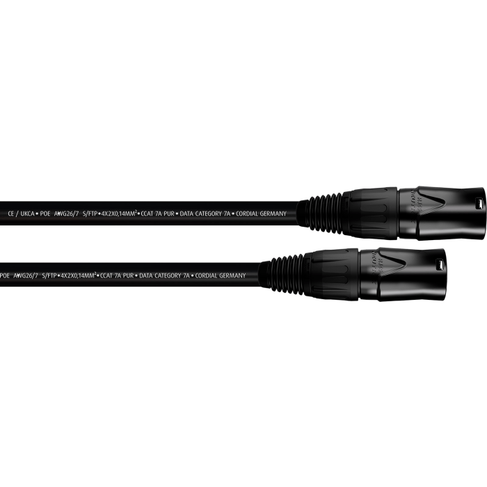The cable is ruggedized and suitable for live-sound "on the road" applications. The cable is somewhat stiff because of the PUR material of the jacket.