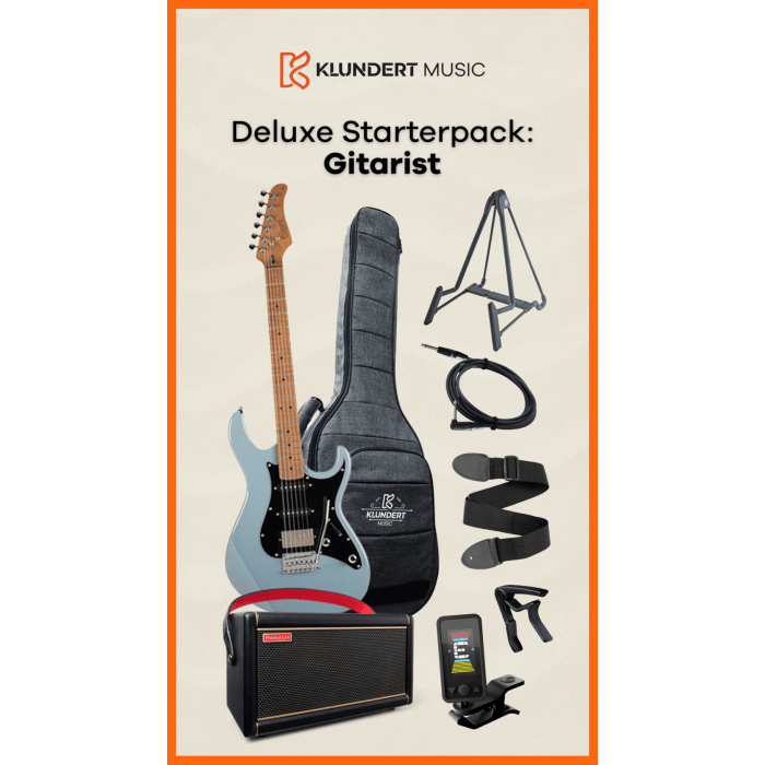 The Deluxe Starter Set contains our guitar specialists Thijs and Jeroen's favorite choices for starters. With this you choose the same items we would advise you when you are in our store for advice. The most versatile, versatile and quality instrument, within a starter budget. Whether you want to play jazz, pop, blues or rock-hard metal, you can do it with this set.