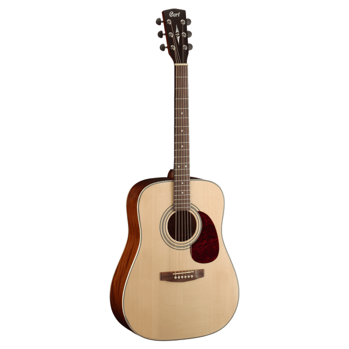 Cort's Earth 70 is the world's best-selling western guitar for the beginning guitarist. And that's not surprising; a nicely built guitar with a solid spruce top, laminated mahogany sides and back and an ovangkol fingerboard that -for this price- sounds super good.