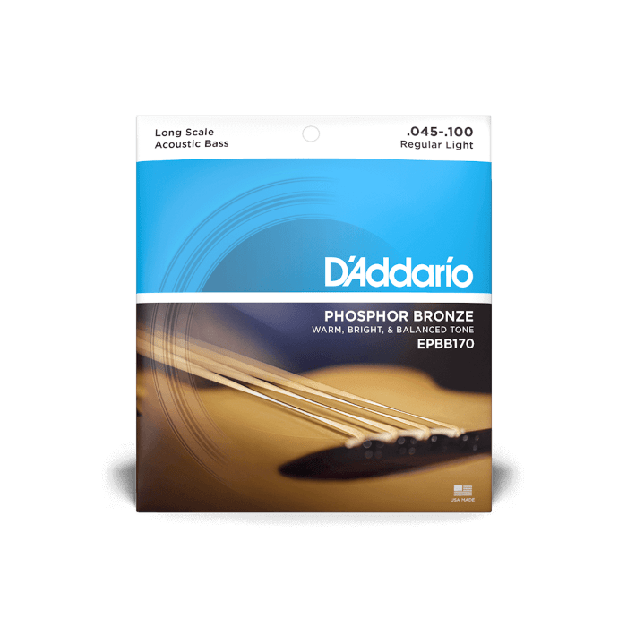 Phosphor Bronze acoustic bass strings give you the sweet tone and easy feel you want when playing unplugged. With their beautiful sonic balance and tonal warmth, D’Addario Phosphor Bronze have become the standard in acoustic bass strings. Precision wound with phosphor bronze wrap wire over a high carbon steel core, our Phosphor Bronze acoustic bass strings provide unparalleled versatility suitable for most acoustic styles.This 45-100 Regular Light Long Scale set fits most standard sized acoustic basses.