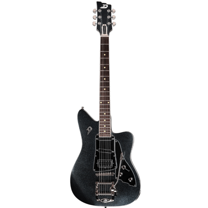 The Paloma came and conquered when it was released in 2016 and instantly became one of the most popular models of Duesenberg's arsenal. The full solid body, HSS pickup confuguration, the Deluxe Tremola...it was the missing piece in the Duesenberg collection and it just works. Apart from the fact that the comfortably contoured, offset body is just ultra-cool! It is made out of a solid piece of alder, the neck is a single maple piece and has a rosewood fingerboad. And look at that beautiful Black Sparkle finish!