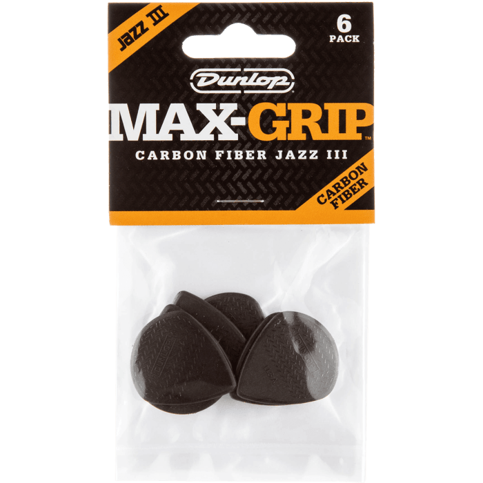 Dunlop 471P3C Max Grip Jazz III Carbon Fiber 1.38mm Plectrum 6-Pack