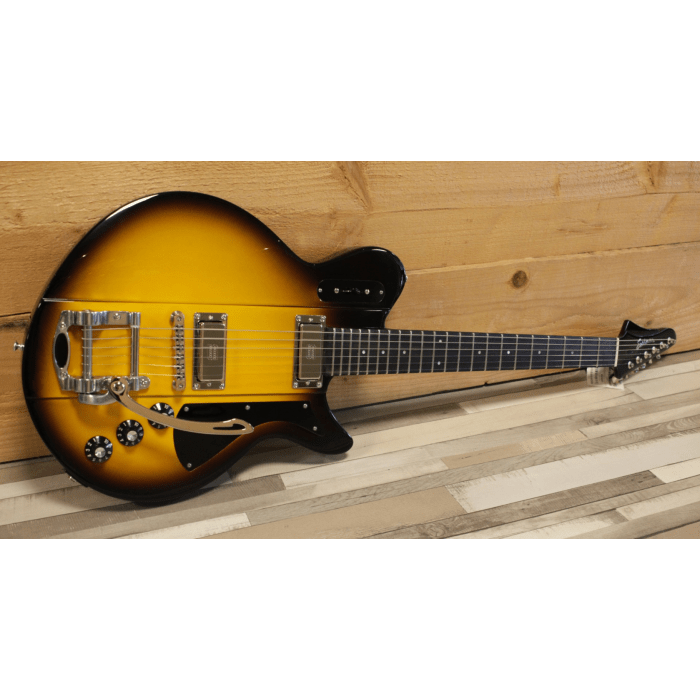 The lightweight guitar body is made from 1 piece of Okoume. The comfortable neck with "Traditional Even C" neck profile is made from 1 piece of Okoume with ebony fingerboard with 12" radius and fitted with 22 Jescar medium-jumbo frets. The scale length is a Fender-like 25.5" (648mm). The tuning knobs are Japanese Gotoh SD91 to keep the tuning stable. This Juliet is equipped with Seymour Duncan mini humbuckers and a Duesenberg/Goldo trem system.