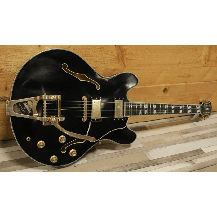 The bridge is a Gotoh GE104B-Relic, combined with a US Bigsby B7 Gold tailpiece, providing vibrato functionality and stability. Gotoh SD90 Relic tuning knobs ensure precise and reliable tuning, while gold top hat knobs provide elegant control over the electronics. The pickups are Lollar Custom Aged/Wound Imperial Humbuckers that deliver rich, vintage-inspired tone with a perfect balance of warmth and clarity. A Switchcraft 3-way switch and potentiometers with CTS 500K Audio Taper provide seamless tonal versatility.