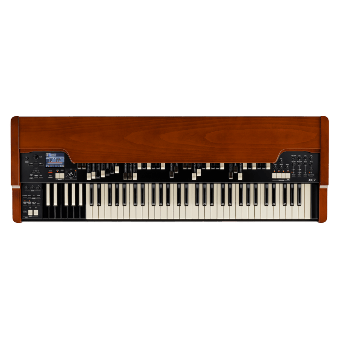 For decades, the Hammond name has been synonymous with classic tonewheel organs like the legendary B-3, which played a defining role in the music of the '60s and '70s. In the digital age, Hammond has built on that reputation with advanced clonewheel organs, equipped with modern sound generation that approximates the iconic organ sound in detail. The Hammond XK-7 takes the B-3 experience to a new level. This single-manual organ combines a realistic playing experience with an extensive selection of transistor combo organs from Italy, Britain and Japan, complemented by classical and theater pipe organs. This makes the XK-7 a compelling successor to the instrument known for good reason as the King of Instruments.