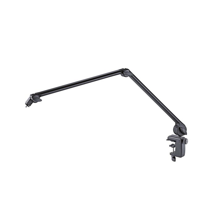 The K&M 23865 is a scissor arm microphone stand. This desk arm from König & Meyer has a nice design and features a 3/8 or 5/8 threaded connection for placing your microphone clamp. This innovative desk clamp lets you quickly make a stable connection to the surface and in this way neatly align the mounted microphone, both in studio environments and multimedia workstations. The microphone arm has a maximum load weight of 1.5 kg. So even heavier microphones can easily handle it. Furthermore, the stand can be attached to both tubes and smooth surfaces.
