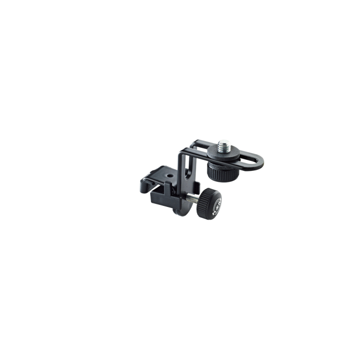 Unique, compact holder to attach microphones to drums. Easy to mount and remove. Rubber inserts absorb noise and shock. No parts to lose. Tightens securely. With 3/8" thread