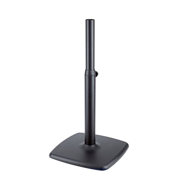 We recommend this tripod if you are looking for a professional, stable and rock solid solution for placing your studio monitors. With this monitor tripod you can optionally order a separate top plate, the K&M 26792. This top plate is available in three sizes to perfectly fit the size of your monitors. Your power and audio cables can be neatly hidden in the leg
