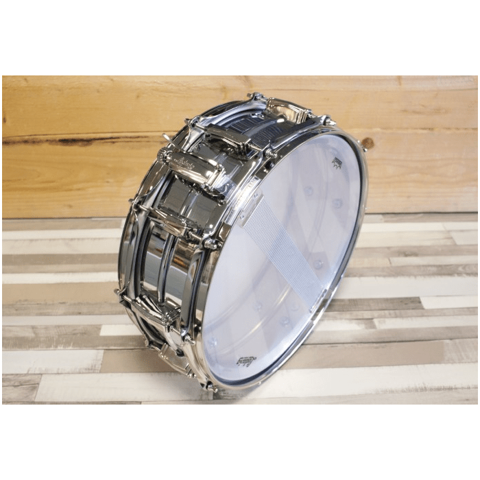 The Chrome over Brass has a chrome-plated brass shell, making it harder and stiffer (please note; this is truely different from a LM400 Supraphonic snare which has a chrome over ALUMINIUM shell!). If you thought your Black Beauty ripps; think again! This snare is bright, focused and tight and the depth measurement of 5" further emphasizes all that.