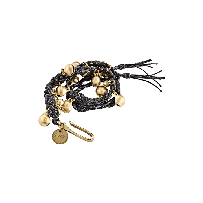 Meinl Ajuch Bells are a crafty percussion instrument; the cast bronze bells are attached to a hand-braided, synthetic cord. To attach the "string of bells" easily and secure, a brass hook is tied at the end of the cord that also contributes to the percussive effect. With the included canvas pouch your can conviniently store and care the bells with you.