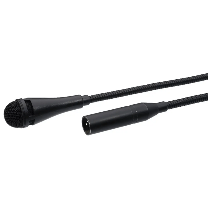 The Monacor DMG-450 is a dynamic gooseneck microphone. The microphone is ideal for use as a talkback microphone on a mixing console. The microphone has a 3-pin XLR connector. Because it is a dynamic microphone, no power supply (48V phantom) is required.