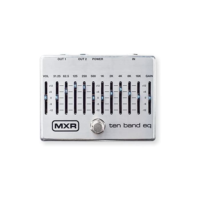 The MXR Ten Band EQ stompbox is a 10-band equalizer with noise reduction, true bypass and clear LED illumination. This makes this effects pedal a welcome addition to any pedalboard to emphasize or attenuate frequencies by up to 12 dB. This lightweight MXR has two 6.3 millimeter jack outputs to provide signal to two different chains. Includes 18V adapter.