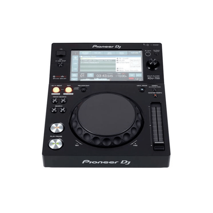The XDJ-700 comes with a large touchscreen, a familiar club layout and it inherits a lot of features from its big brother, the XDJ-1000. Its compact size and removable stand offer fantastic set-up options for even the smallest booth or home setup.