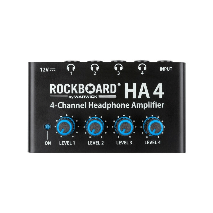 The RockBoard HA 4 is a compact headphone amplifier that allows you to distribute a stereo input signal to four headphone jacks. Each channel is equipped with its own amplifier and independent volume control. This allows each user to adjust the volume to their liking without affecting the other outputs. Ideal for situations where accurate monitoring is essential, such as in the studio or on stage.