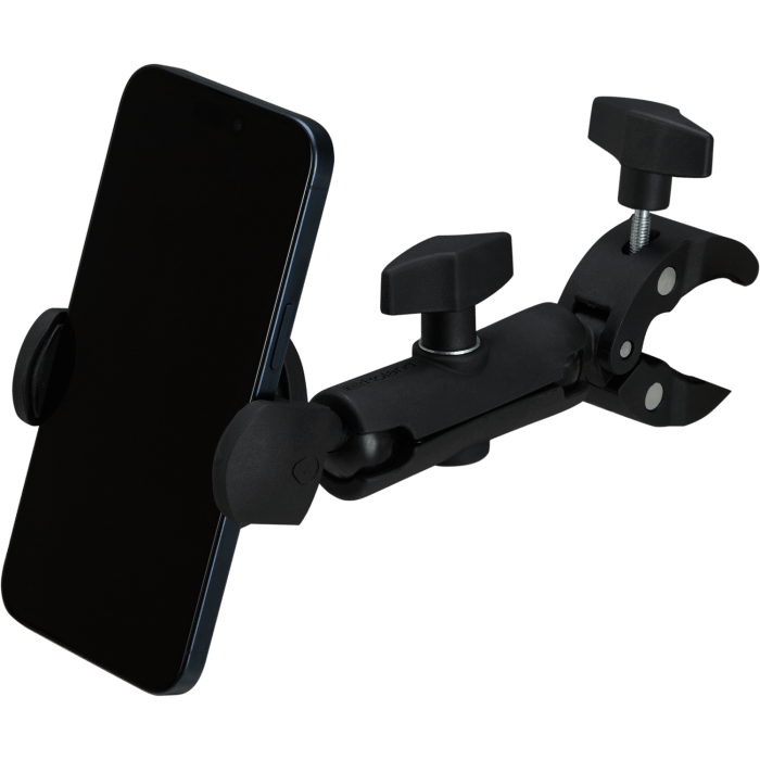 - spring-loaded clamp with soft padding for secure attachment of your smartphone