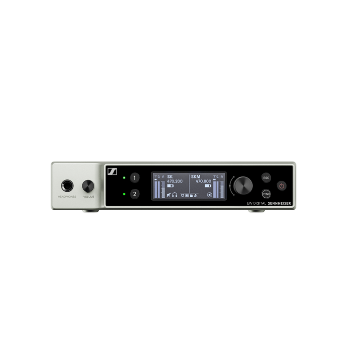 The Sennheiser EW-DX EM 2 S1-10 is a 2-channel half rack receiver for use with Evolution Wireless Digital handheld and pocket transmitters. This series is known for such things as the lowest latency on the market, equidistant frequency spacing and ultra-wide input dynamic range (IDR).