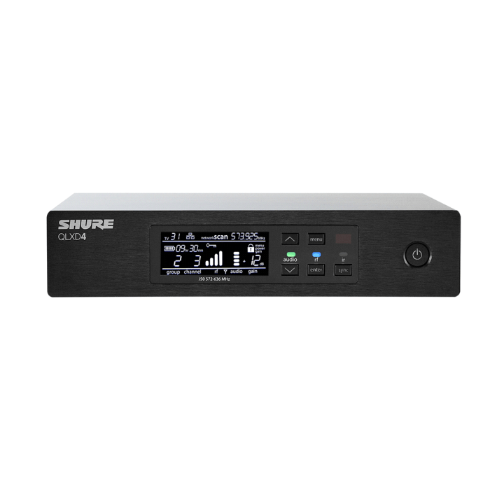 The Shure QLXD4 digital wireless receiver takes all the guesswork out of locating open frequencies. When used with the QLXD1 wireless bodypack transmitter or the SM86, Beta 58A, Beta 87A and SM58 wireless handheld microphones, the QLXD4 quickly syncs with the touch of a button for efficient, hassle-free set-up.QLX-D wireless systems deliver defined, streamlined performance