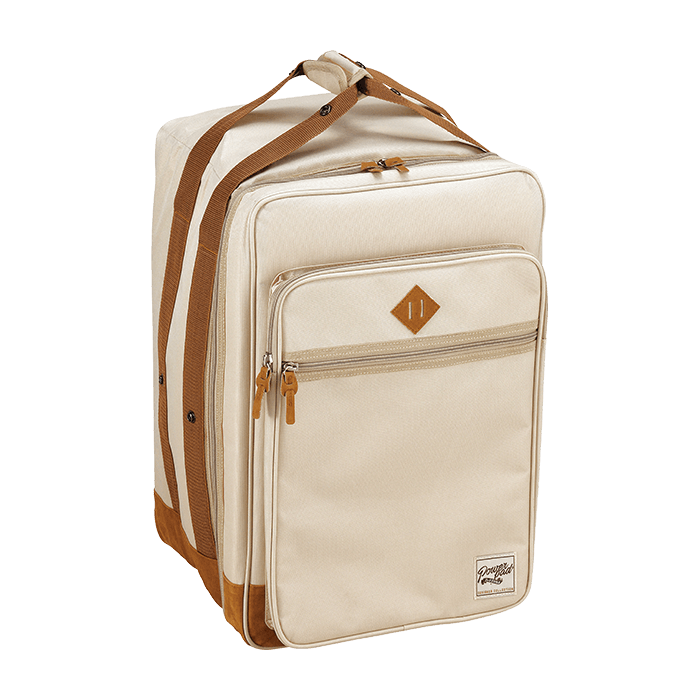 The TAMA POWERPAD Designer Collection Cajon Bag is a carrying case for your cajon. This slim bag has a stylish color that really stands out among the crowd. Inside the bag, a thick 20 mm semi-rigid cushion protects your cajon from drops, bumps and scratches. The bag has padded backpack straps and a sturdy handle to carry it comfortably and efficiently. So if you want to take your cajon on the road in style, the TAMA POWERPAD Designer Cajon Bag is the right choice!