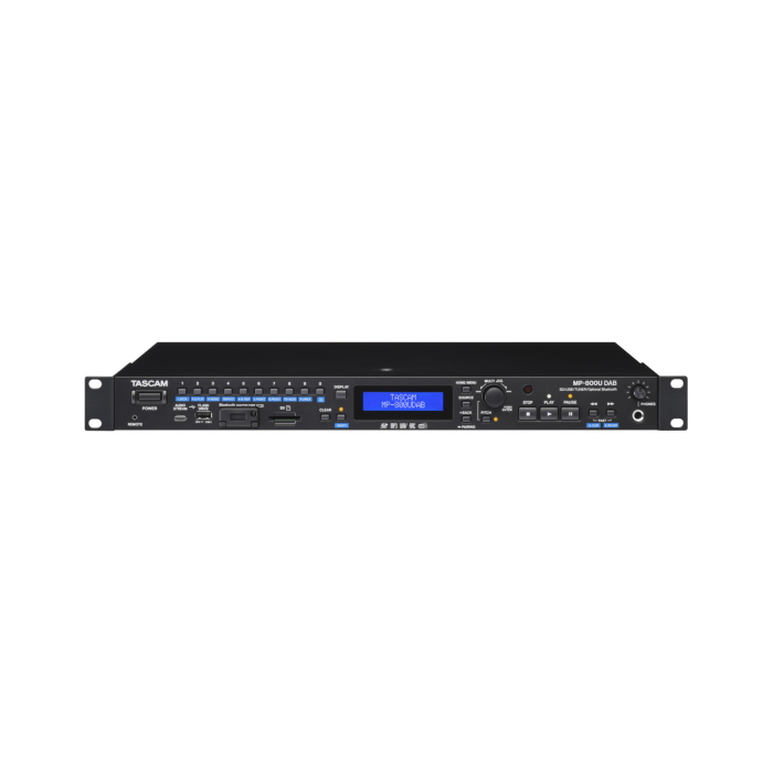 The Tascam MP-800U DAB is a reliable audio player for both fixed installations and mobile applications. This player supports playback from SD card, USB stick or via the built-in DAB/FM radio receiver. It also features a USB D/A converter. Optional streaming via Bluetooth is possible.