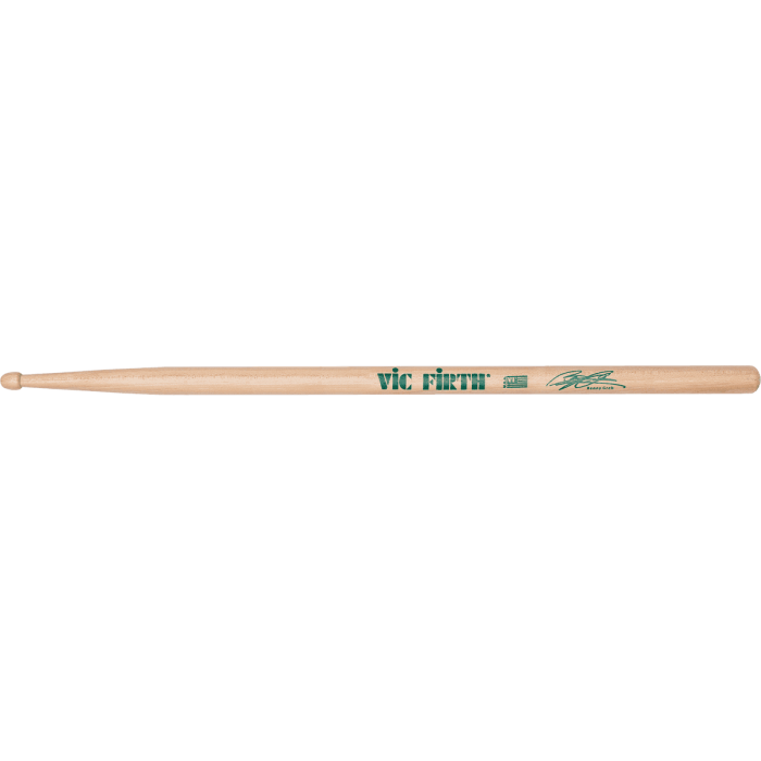 Hickory drumstick-pair from Vic Firth's Signature Series developed in collaboration with "the master of groove," Benny Greb. SBG sticks are a modified 5B-type stick with a shortened teardrop tip for a defined cymbal sound and excellent rebound. The stick is recognizable by its green print.