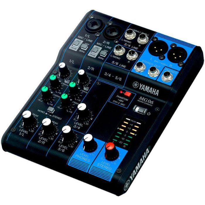 The advantage of this small Yamaha mixer compared to other small mixers is that here on the first 2 XLR inputs phantom power can be switched.