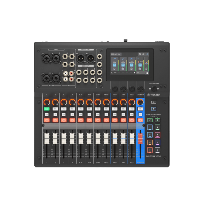 The Yamaha MGX12V is more than a digital mixer; it is a multi-functional creative platform. Flexible routing and dual Main and Sub-USB ports give you an 18-in / 18-out USB audio interface, complemented by 2-track recording and playback through the Sub-port. Bluetooth makes wireless audio playback easy during performances, streams or studio sessions. Eight freely configurable pads allow direct triggering of sound effects or proprietary functions. With internal recording of up to 16 tracks and 2-channel playback from microSD, capture professional audio anywhere, without an external recorder.