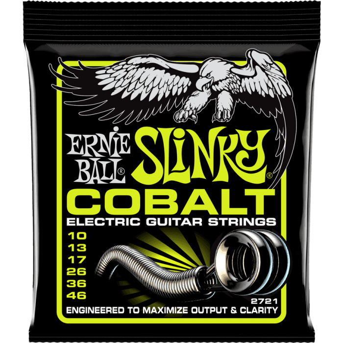 Ernie Ball Cobalt Slinky Elektrische Gitaarsnaren zorgen voor een groter dynamisch bereik, een ongelooflijke harmonische respons, meer laag en heldere hoge tonen. Cobalt zorgt voor een sterkere magnetische relatie tussen pickups en snaren dan elke andere legering die tot nu toe verkrijgbaar was. Cobalt Slinky gitaarsnaren voelen ook zacht en zijdeachtig aan, waardoor snaren benden een fluitje van een cent wordt.