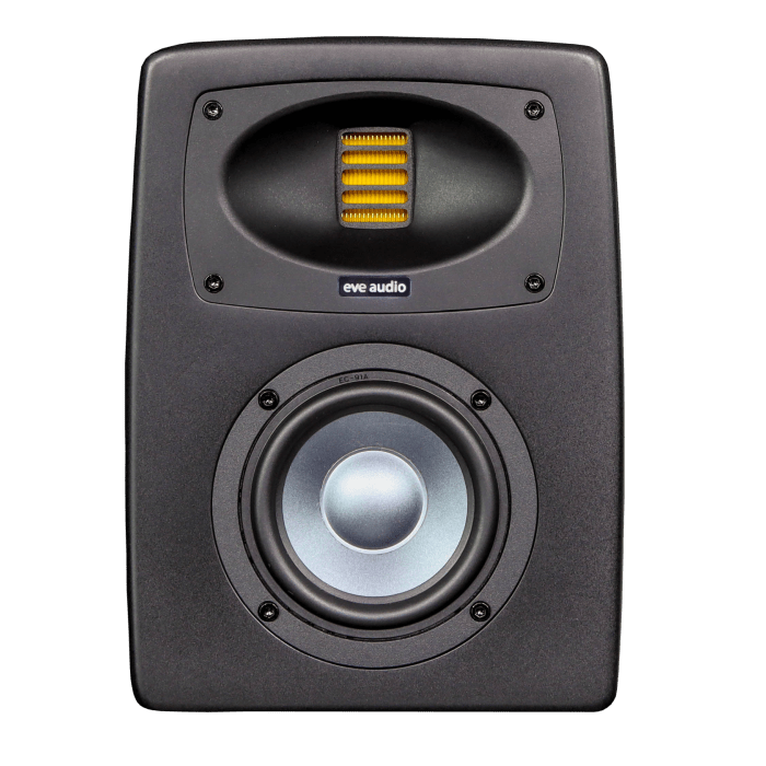 - Het meerkleurige “EVE audio” logo op de voorkant geeft direct visuele feedback over de systeemstatus. Geeft clipping aan, toont de voortgang van de firmware-update en andere operationele toestanden