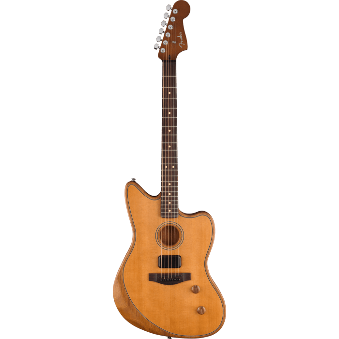 - Twee pickupsystemen: Fender Acoustasonic Shawbucker; Fishman Under-Saddle Transducer