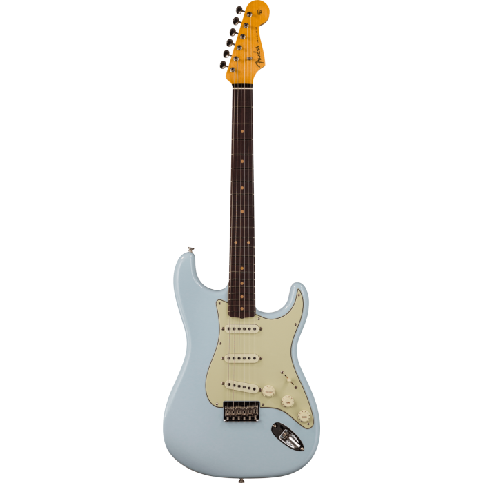 In 1959 kreeg de Stratocaster een aantal belangrijke vernieuwingen. Zo werd de gitaar uitgerust met een rosewood (palissander) toets in “slab”-uitvoering met klei-kleurige positiemarkeringen, een drielaags mintgroene slagplaat met 8, 9 of 10 schroeven (afhankelijk van de productiemaand) en een metalen spacer bij de string tree. Met de Vintage Custom ’59 Hardtail Stratocaster hebben de dames en heren van de Fender Custom Shop die kenmerkende vernieuwingen die de Strat in het legendarische jaar 1959 kreeg, op uiterst nauwkeurige en authentieke wijze weten te reproduceren.